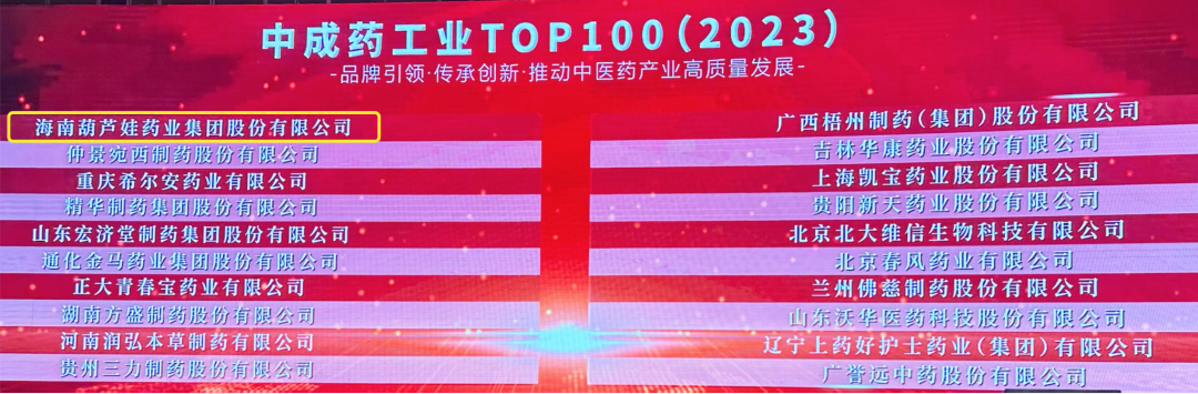 会上,还发布了“2023中成药工业TOP100”榜单,PG国际药业集团荣耀上榜。
